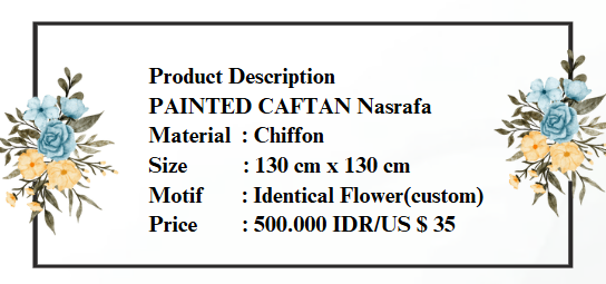 NASRAFA is at the forefront of meeting fashion trends with unique innovations. NASRAFA produces kaftans adorned with painted motifs of leaves and flowers. These leaf and flower motifs are a representation of the symbols of revival and growth, beauty and aesthetics, and carry a sense of feminism.